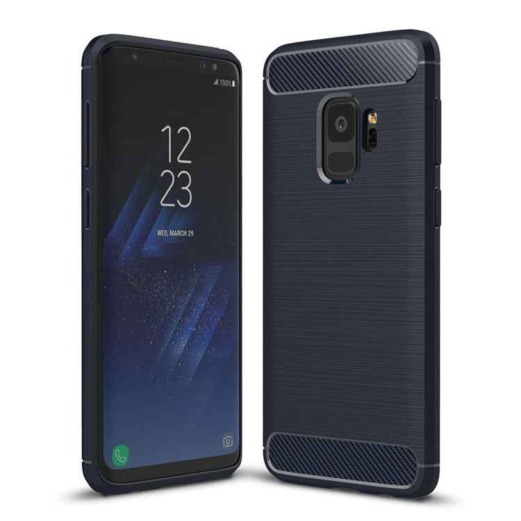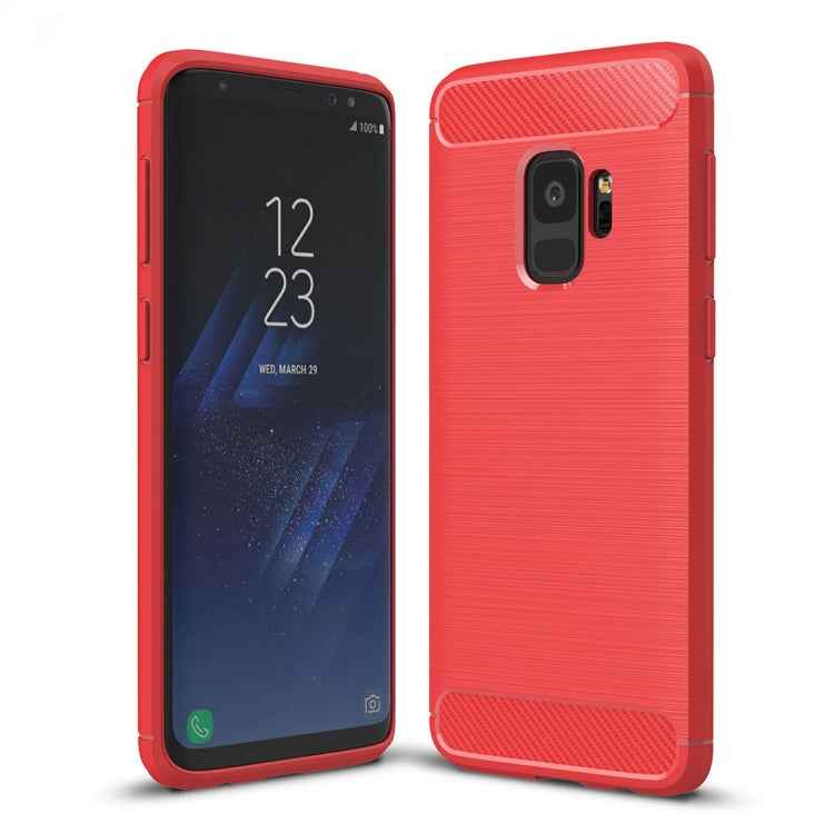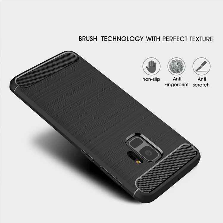 For Galaxy S9 Brushed Carbon Fiber Texture Soft TPU Anti-skip Protective Cover Back Case