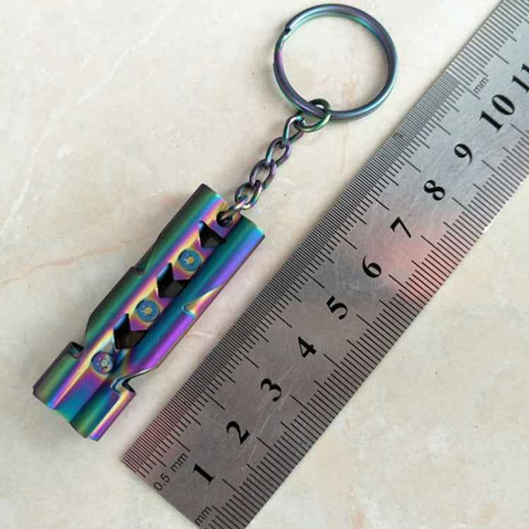 Outdoor High-decibel Stainless Steel Self-protection Double Tube Survival Whistle with Key Ring, Whistle (Silver), Whistle (titanium)