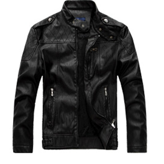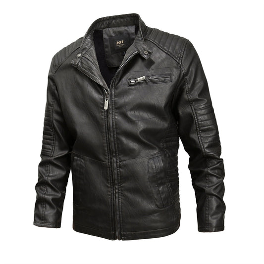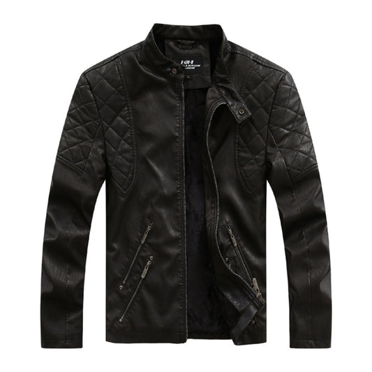 Men Plus Velvet Motorcycle Jacket Coat (Color:Coffee Size:XXXL)