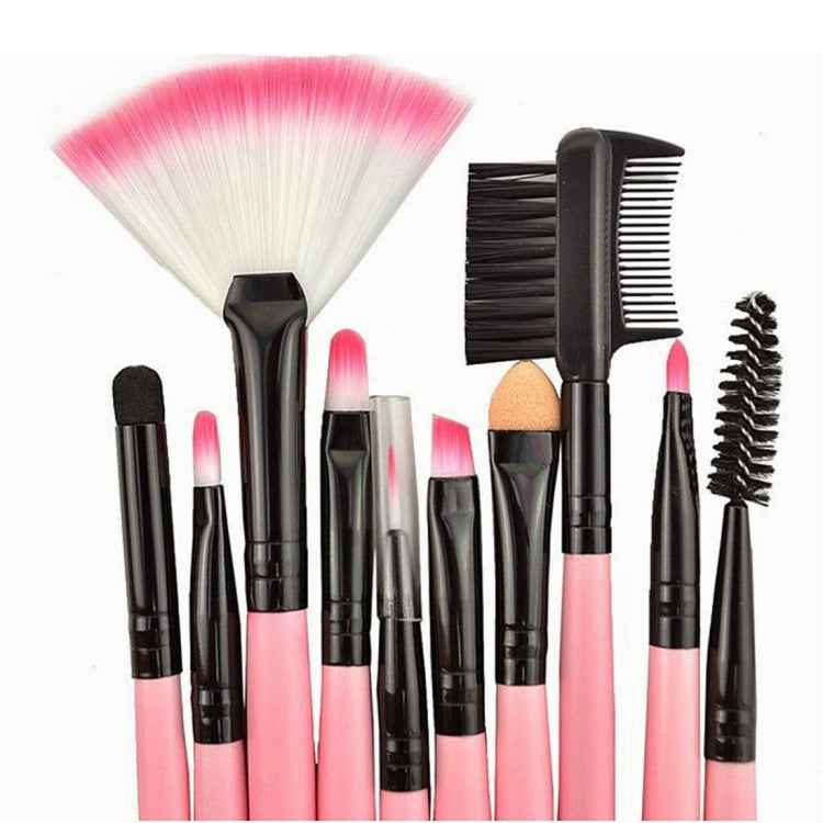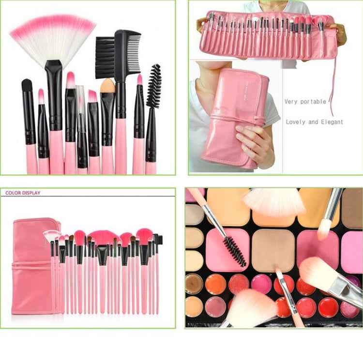 24 PCS Goat Hair Pink Handle Makeup Brush Set with Pink Pouch