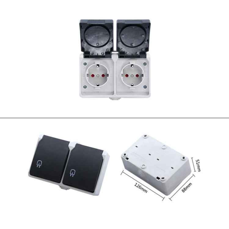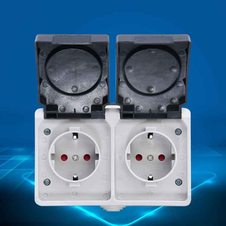 IP44 Waterproof Double-connection Socket with Cover, EU Plug