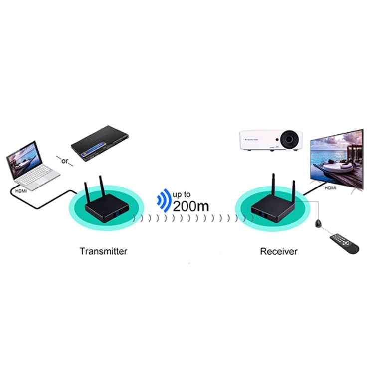 7. The content stream on STB, DVD/Blu-ray player, projector, game console or any other device with HDMI output can be wirelessly transmitted to the remote TV.