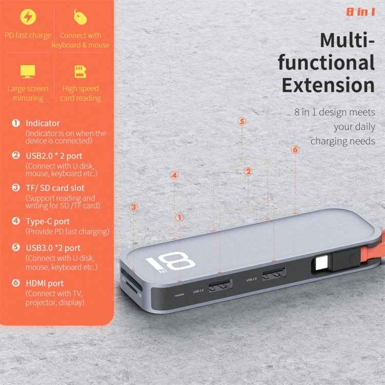 ROCK TR03 8 In 1 Type-C / USB-C to HDMI Multifunctional Extension HUB Adapter