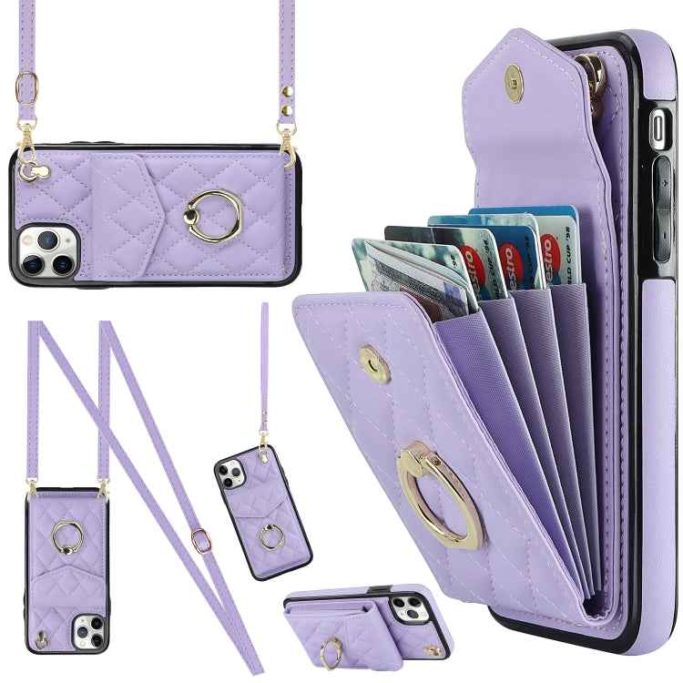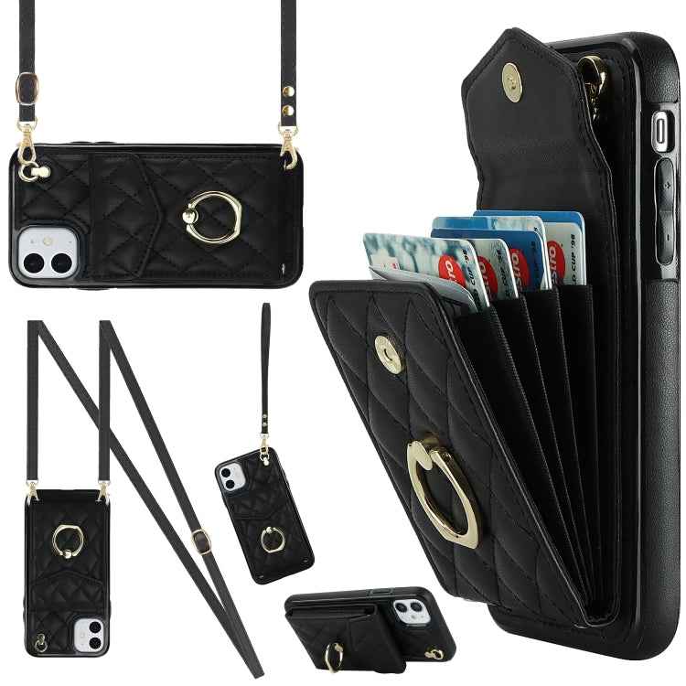 Rhombic Texture Card Bag Phone Case with Long Lanyard