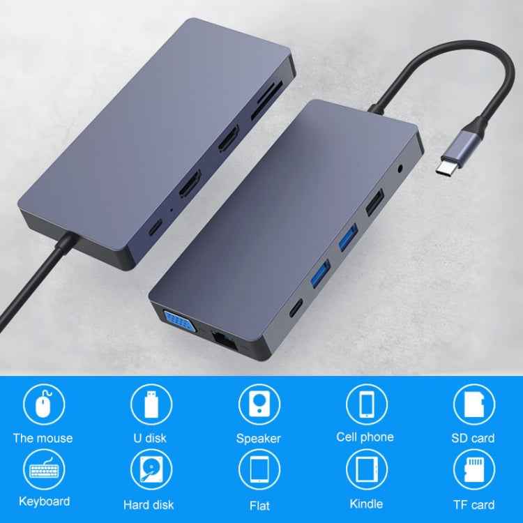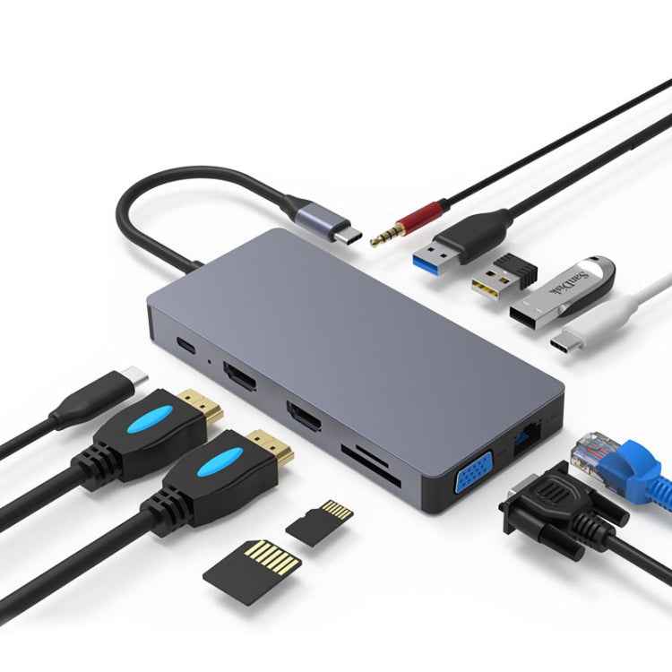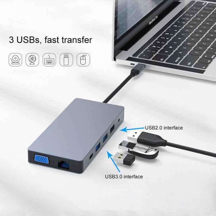 1. Interface: Type-C PD, USB 3.0*2, USB 2.0, Ethernet interface, SD card slot, TF card slot, VGA, HDMI*2, 3.5mm audio interface, Type-C interface