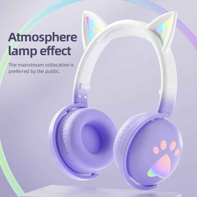 KE28 RGB Cute Cat Ears Bluetooth Wireless Music Headset with Detachable Mic
