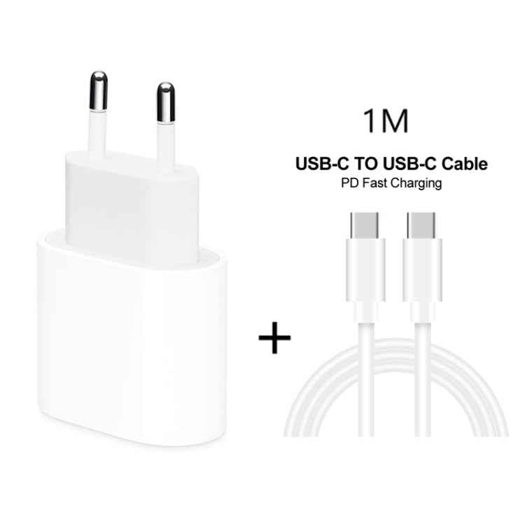 2 in 1 PD 20W Single USB-C / Type-C Port Travel Charger + 3A PD3.0 USB-C / Type-C to USB-C / Type-C Fast Charge Data Cable Set, Cable Length: 1m, EU Plug, 20W 1m