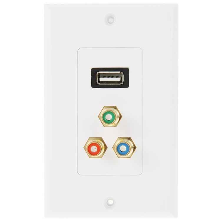 USB 2.0 Female Plug + 3 RCA Female Plugs Wall Plate Panel