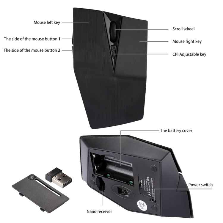 1. 2.4GHz wireless optical mouse, effective distance 10m.