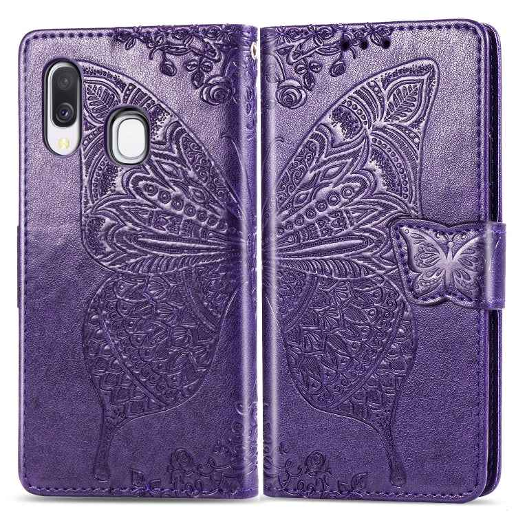 Butterfly Love Flowers Embossing Horizontal Flip Leather Case for Galaxy A40, with Holder & Card Slots & Wallet & Lanyard