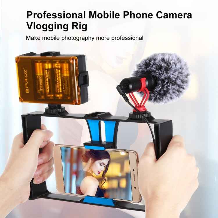 PULUZ Vlogging Live Broadcast Smartphone Video Rig Filmmaking Recording Handle Stabilizer Bracket for iPhone, Galaxy, Huawei, Xiaomi, HTC, LG, Google, and Other Smartphones
