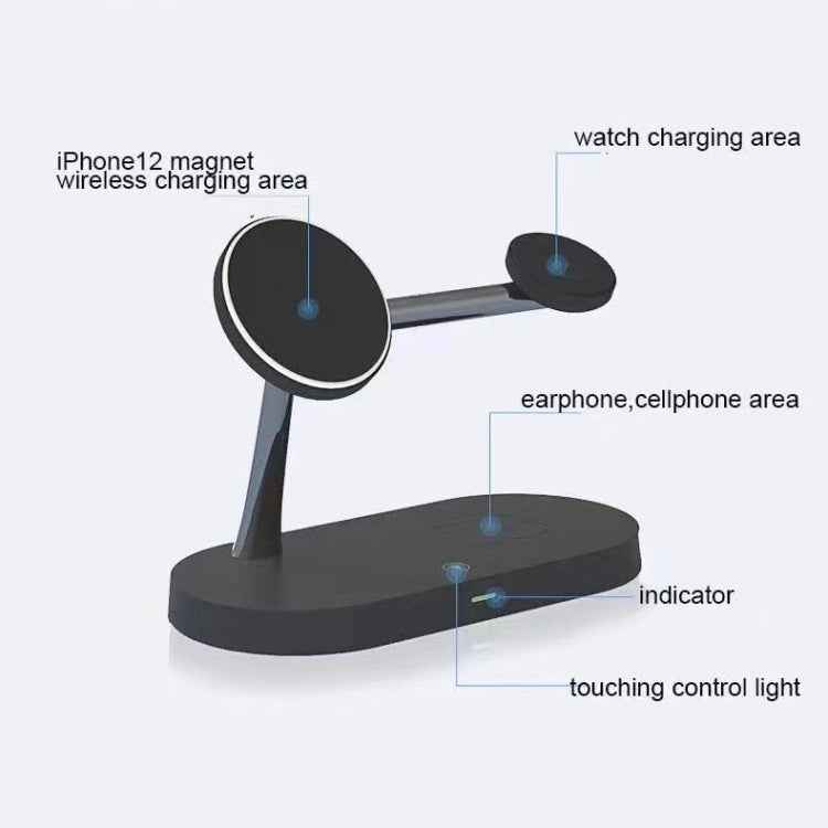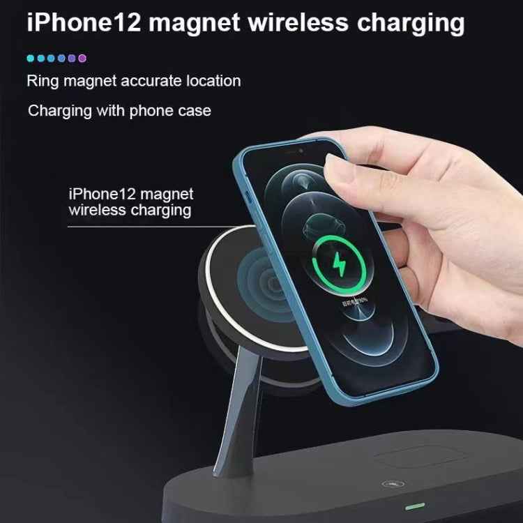 T268 5 in 1 15W Multi-function Magnetic Wireless Charger for iPhone 12 Series & Apple Watchs & AirPods 1 / 2 / Pro, with LED Light