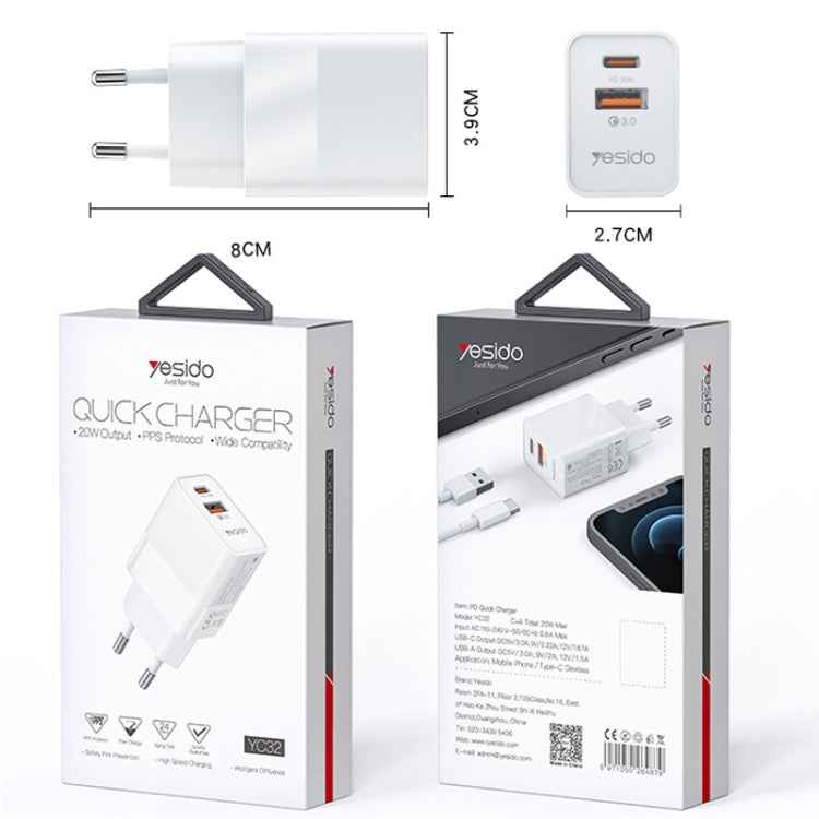 Yesido YC32PD20W + QC3.0 Dual-port Fast Charging Head Mobile Phone Charger