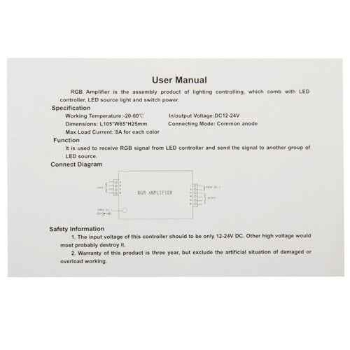 24A RGB Amplifier for LED Light, DC 12V-24V Input