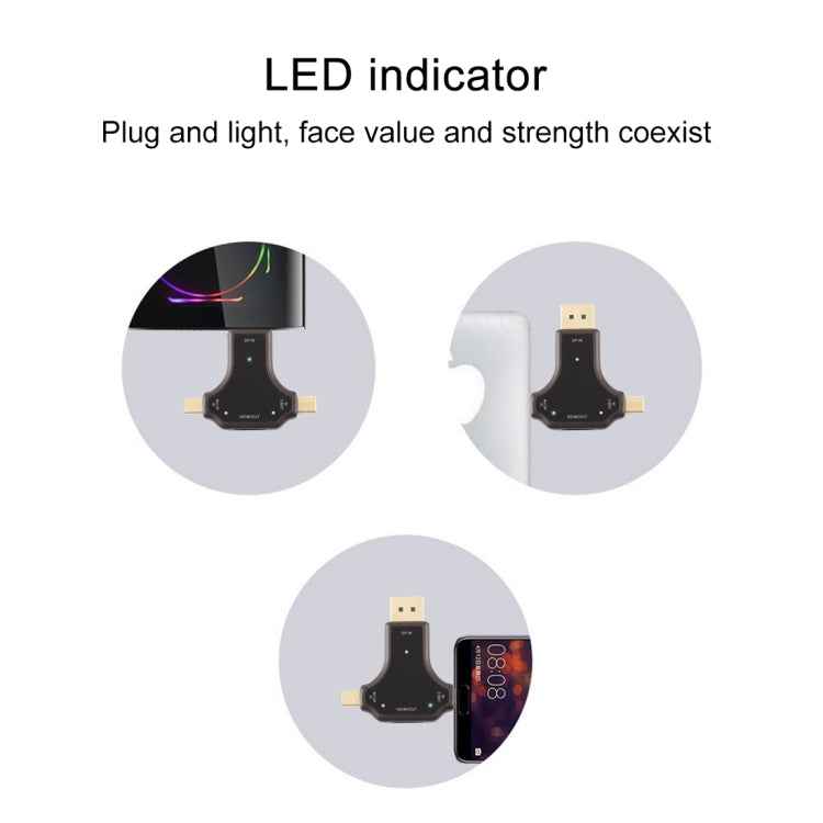 D63A DisplayPort + Mini DP + UCB-C / Type-C Male to HDMI Female 3 in 1 Adapter, D63A