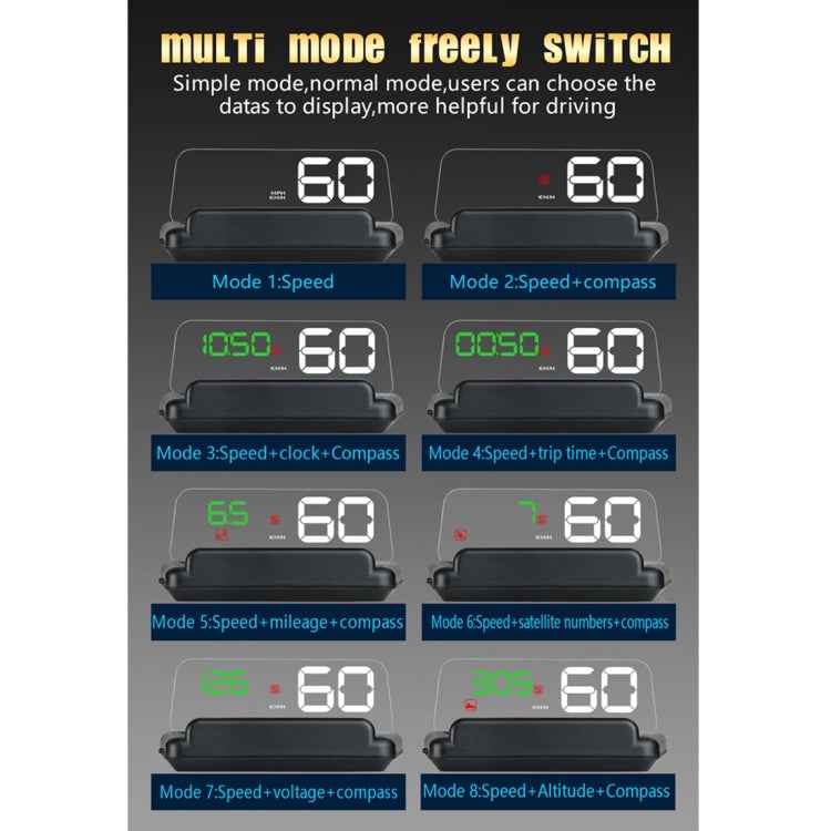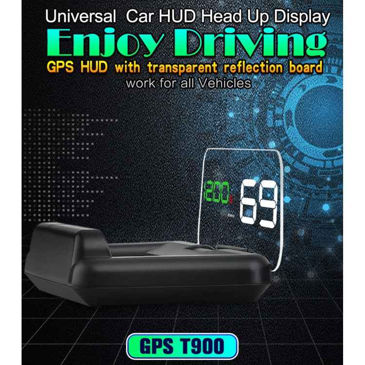 T900 Car GPS HUD Virtual HD Reflection Board Head-up Display, Speed & Driving Distance / Time Display, Over Speed & Voltage & Low Voltage Alarm, Fatigue Driving