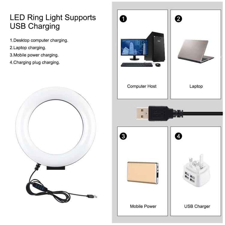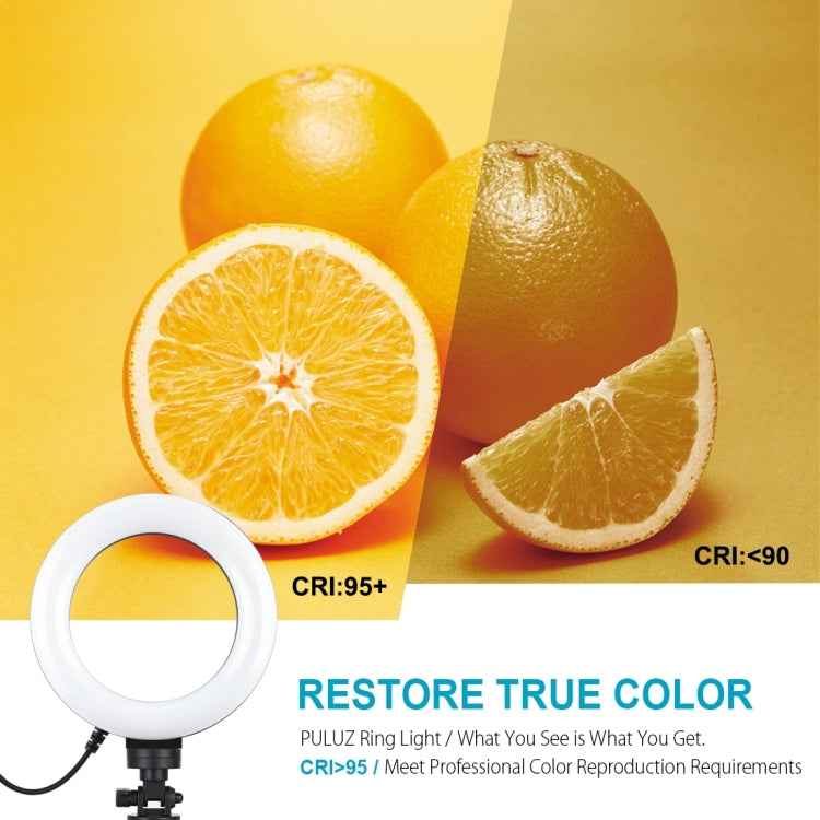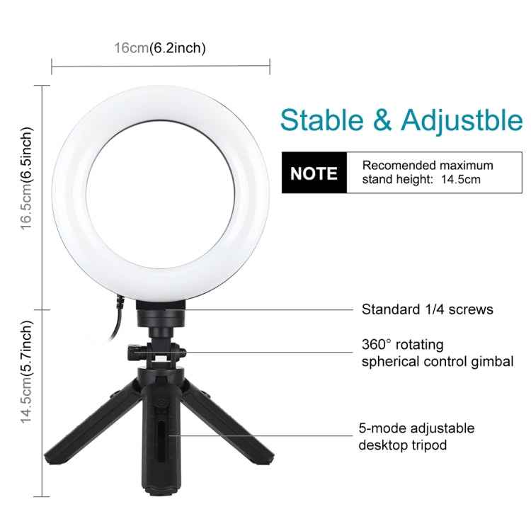PULUZ 6.2 inch 16cm USB 3 Modes Dimmable LED Ring Vlogging Photography Video Lights + Pocket Tripod Mount Kit with Cold Shoe Tripod Ball Head