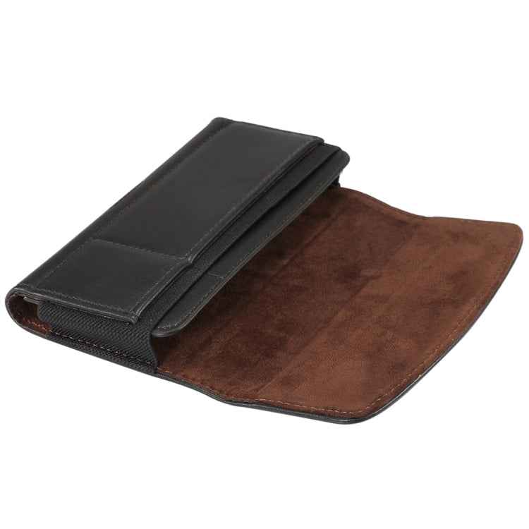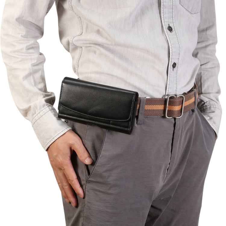Lambskin Elastic Band Men 4.8 Inch Mobile Phone Universal Hanging Waist Leather Case with Card Slot