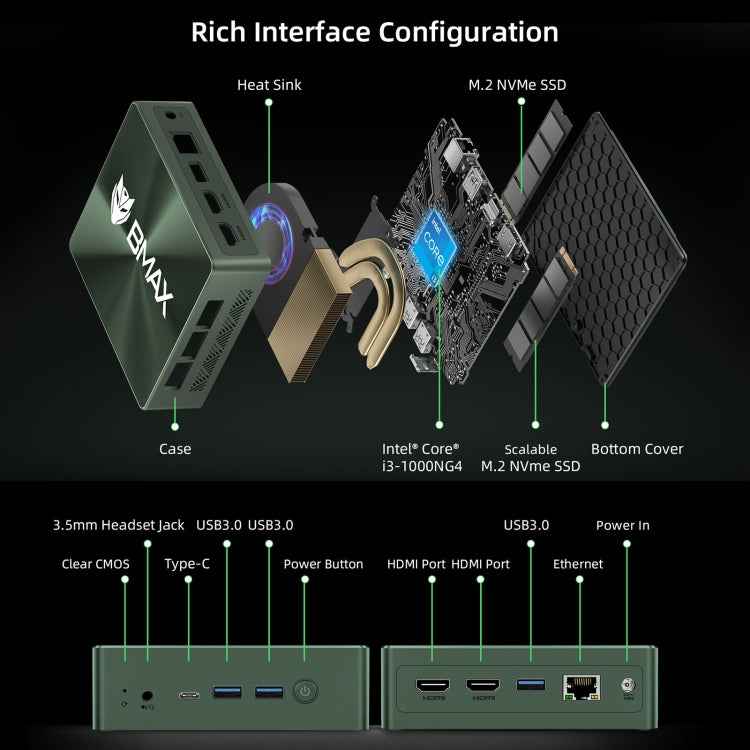BMAX B6 Plus Windows 11 Mini PC, 12GB+512GB, Intel Core i3-1000NG4, Support HDMI / RJ45, EU Plug, B6 Plus 12GB+512GB