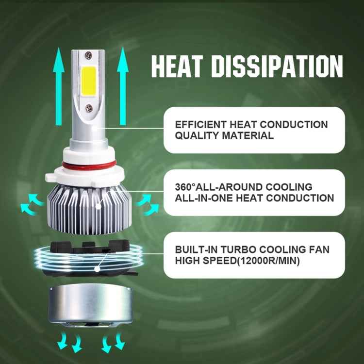 2 PCS C9 9006 18W 1800LM 6000K Waterproof IP68 Car Auto LED Headlight with 2 COB LED Lamps, DC 9-36V