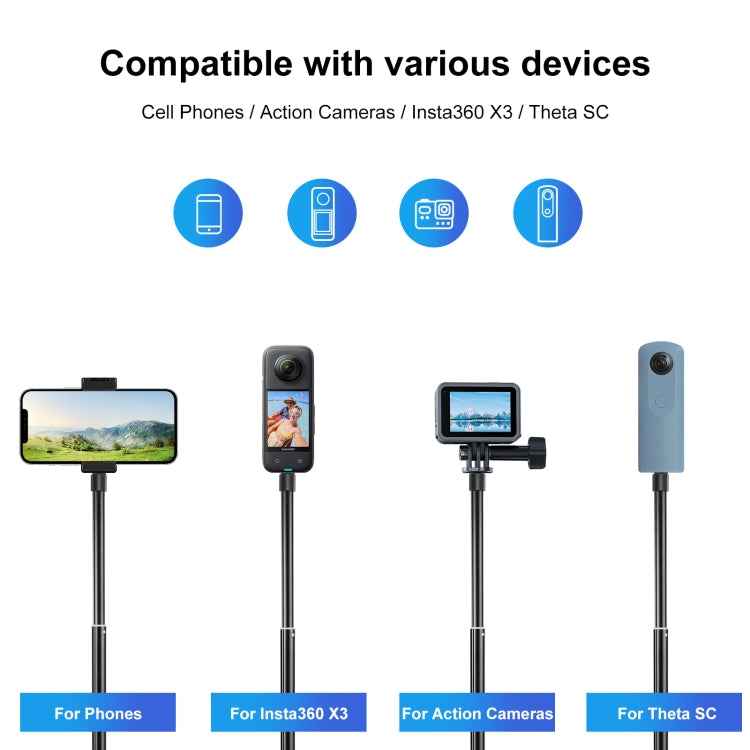 PULUZ 73.5cm Metal Selfie Stick Monopod with Invisible Adapter Base & Screw for Insta360 One RS / X2 / X3 / DJI Osmo 360