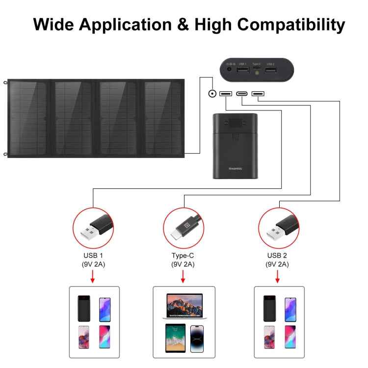 HAWEEL 24W 4 Panels Foldable Solar Panel Charger Bag with 5V / 3.1A Max Dual USB Ports, Support QC3.0 and AFC