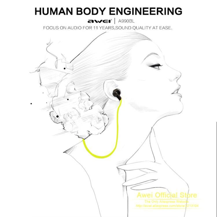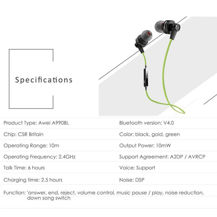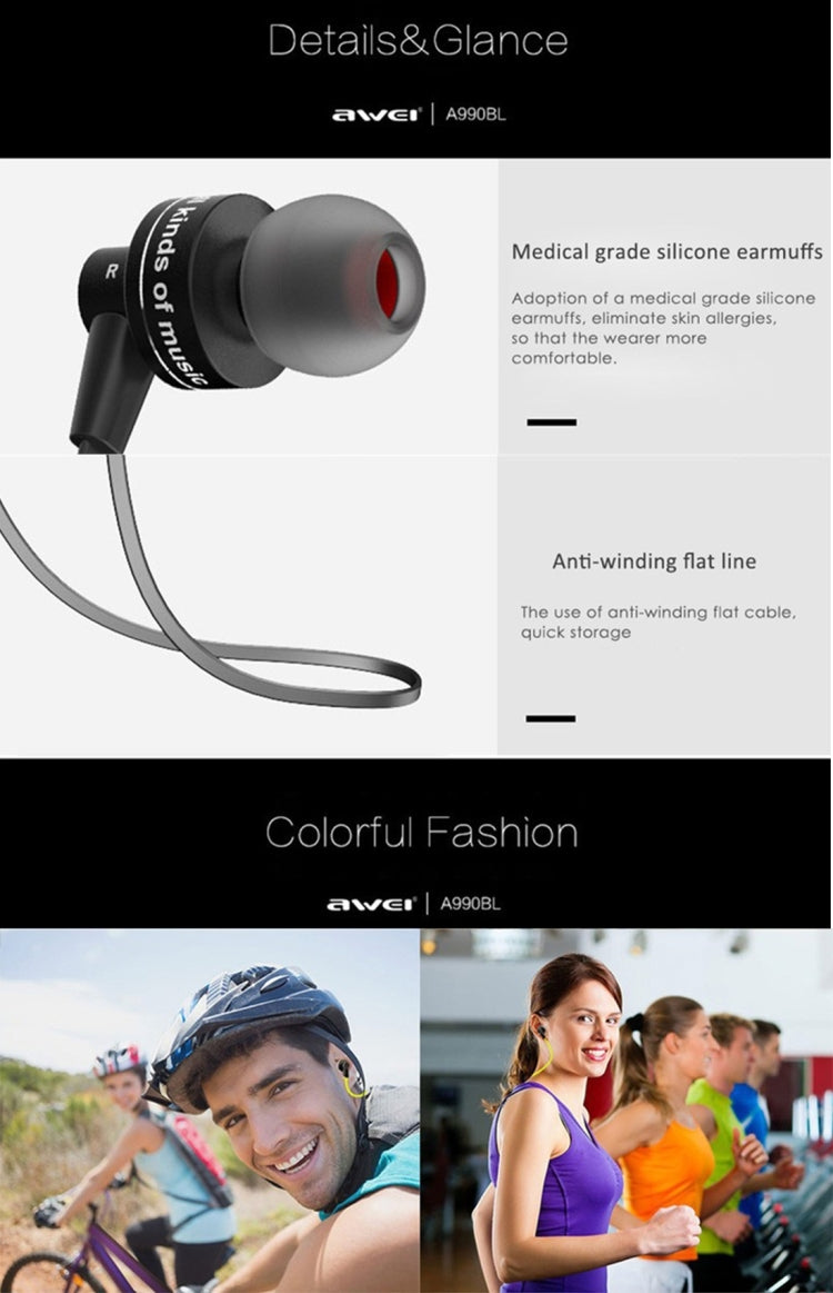 AWEI A990BL Wireless Sport Bluetooth Stereo Earphone with Wire Control + Mic, Support Handfree Call