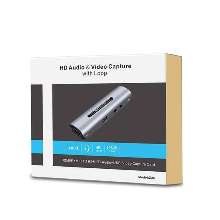 Z35 HDMI Female + Mic to HDMI Female + Audio + USB HD Video & Audio Capture Card with Loop