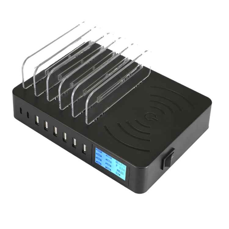 50W 6 USB Ports + 2 USB-C / Type-C Ports + Wireless Charging Multi-function Charger with LED Display & Detachable Bezel, EU Plug