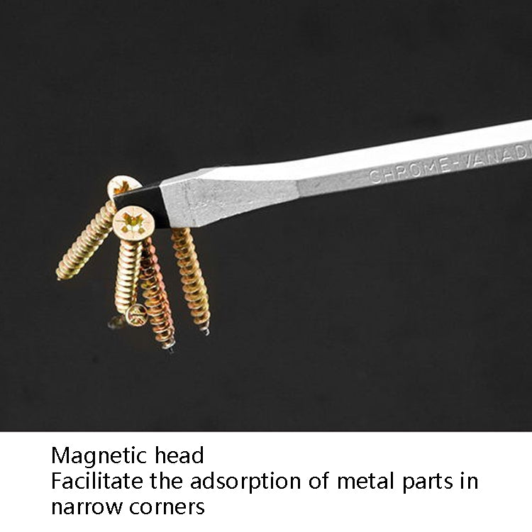 5. Features: chrome vanadium steel forging, strong hardness, magnetic head, easy to absorb metal parts in narrow corners, rubberized handle, non-slip and labor-saving, easy to use, tail knock design