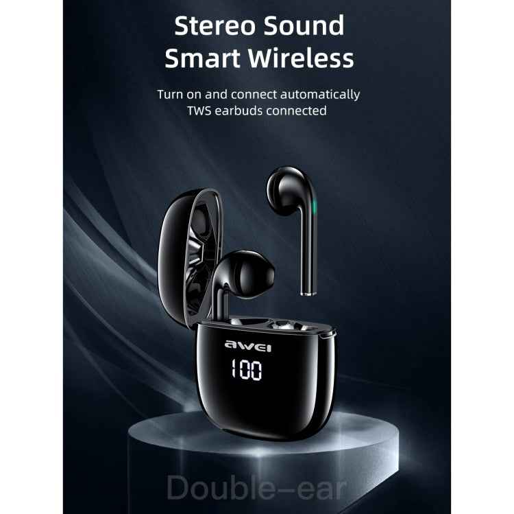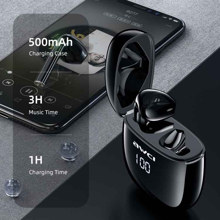 awei T28P Bluetooth V5.0 TWS Ture Wireless Sports LED Display Headset with Charging Case