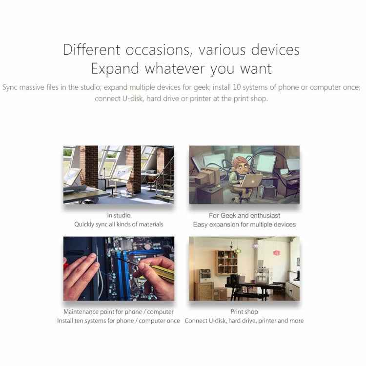 1. 10 USB2.0 interface hubs, reasonable allocation, no interference, can synchronize multiple USB devices and protect precious original ports.