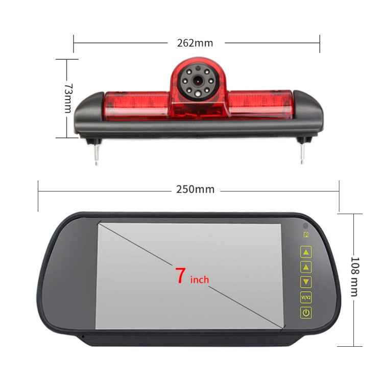 PZ460 Car Waterproof HD High Position Brake Light View Camera + 7 inch Rearview Monitor for Fiat / Citroen / Peugeot