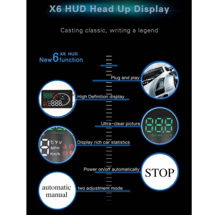 X6 3.5 inch Car OBDII / EUOBD HUD Vehicle-mounted Head Up Display Security System, Support Speed & Water Temperature & Speed Alarm & Fuel Consumption & Battery Voltage, etc., X6