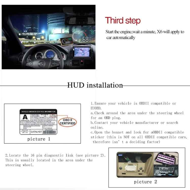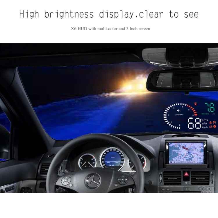 X6 3.5 inch Car OBDII / EUOBD HUD Vehicle-mounted Head Up Display Security System, Support Speed & Water Temperature & Speed Alarm & Fuel Consumption & Battery Voltage, etc.