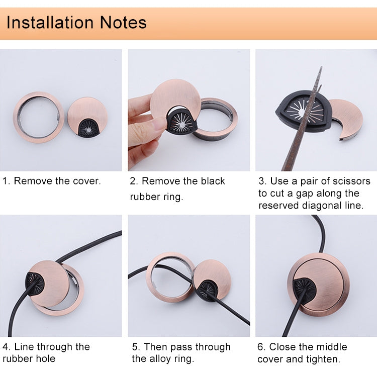 2 PCS Desk Computer Desktop Zinc Alloy Round Threading Box Hole Cover, Hole Diameter: 60mm (Green Bronze), 60mm
