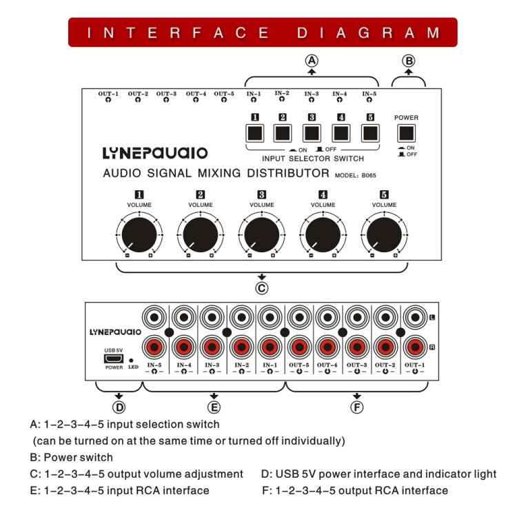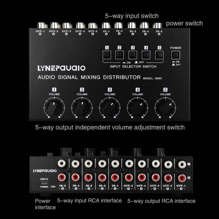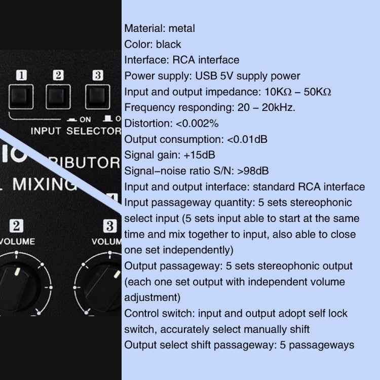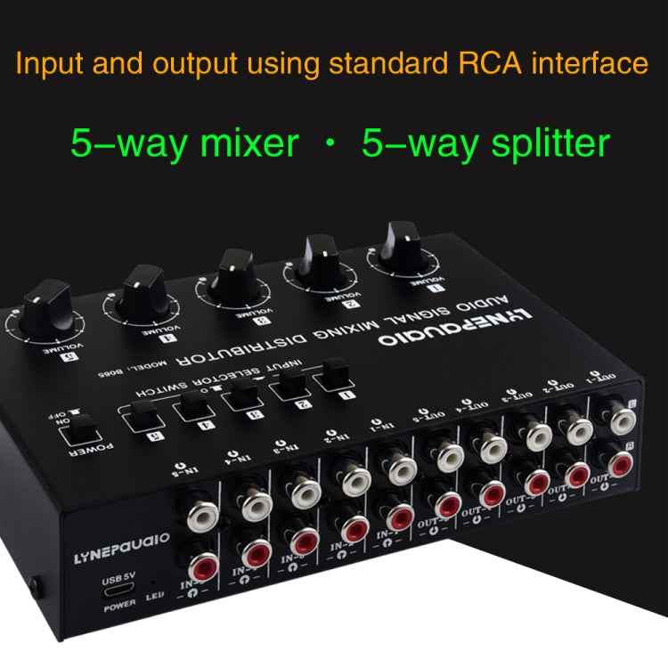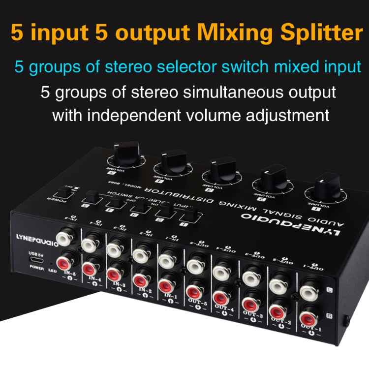 5 In 5 Out Audio Signal Selector Sound Mixing Distribute Device Input Independent Switch