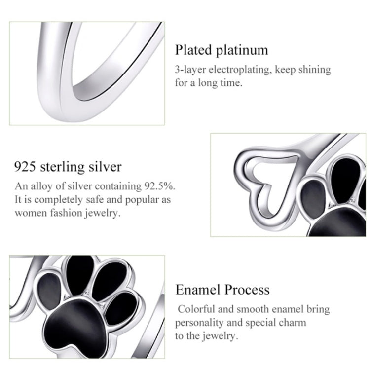 S925 Female Sterling Silver Ring Animal Paw Print Dripping Open Ring
