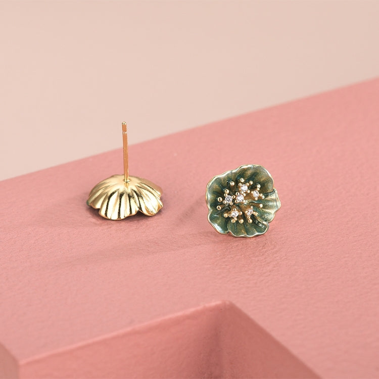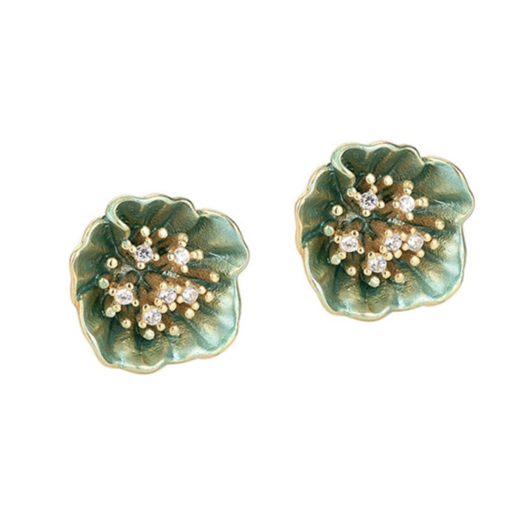 S925 Sterling Silver Green Lotus Petal Earrings
