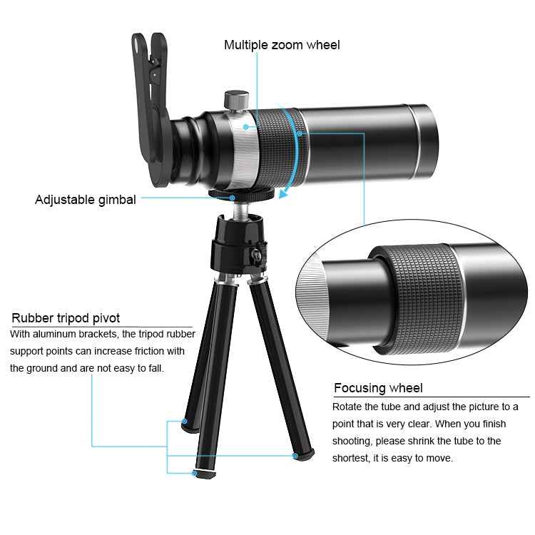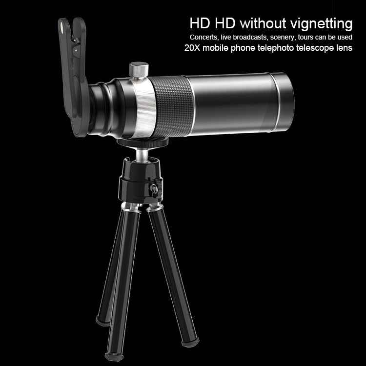 1. Universal mobile telephoto lens 20X telescope lens and tripod.