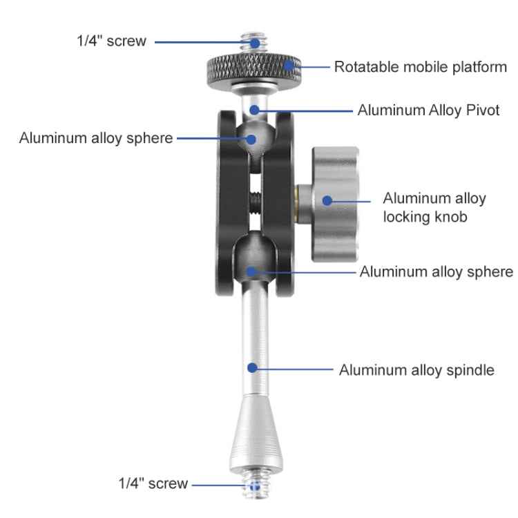 4. The double-headed 1/4 inch screw is fixed, with a locking knob ensures secure and quick operation.