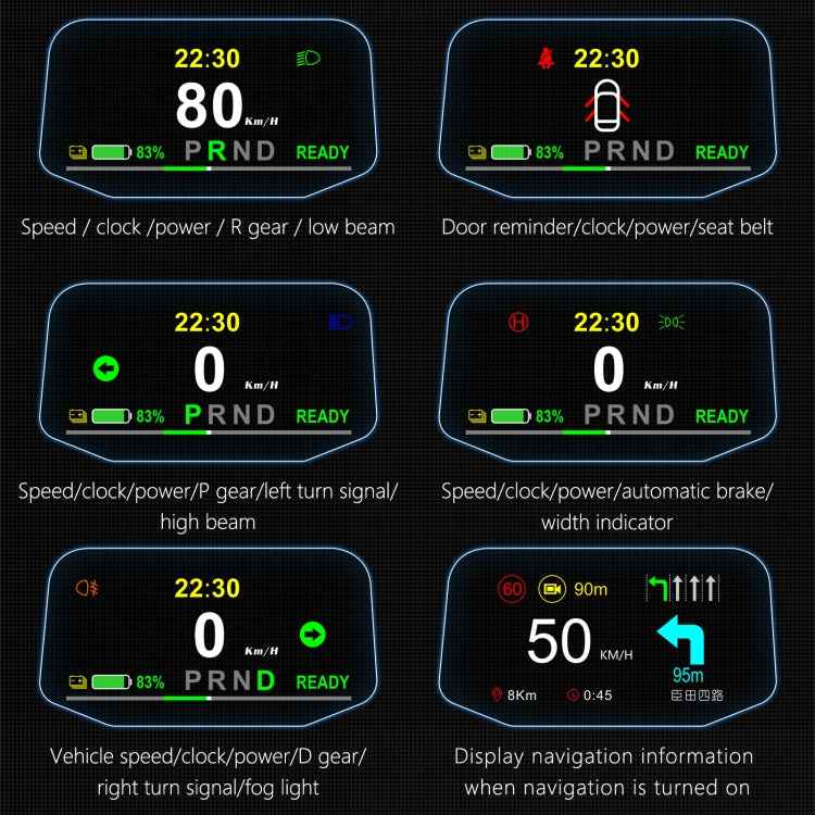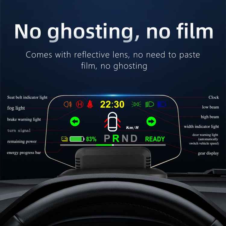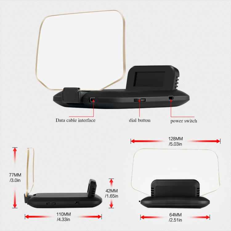 T1 5.1 inch Car HUD Head-up Display Overspeed Alarm / Remaining Battery Percentage Display for Tesla Model 3 / Y