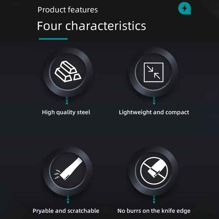 1. Steel/Lightweight and compact/Can pryable and scratchable/No burrs on the knife edge