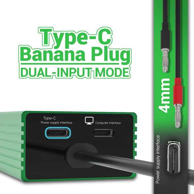 3. Features Type?C, DC5.5, and banana plug inputs for versatile power supply connection options.