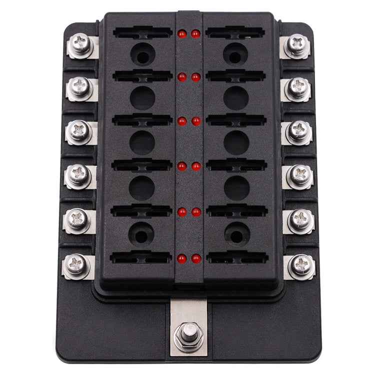 1 in 12 Out Fuse Box Screw Terminal Section Fuse Holder Kits with LED Warning Indicator for Auto Car Truck Boat