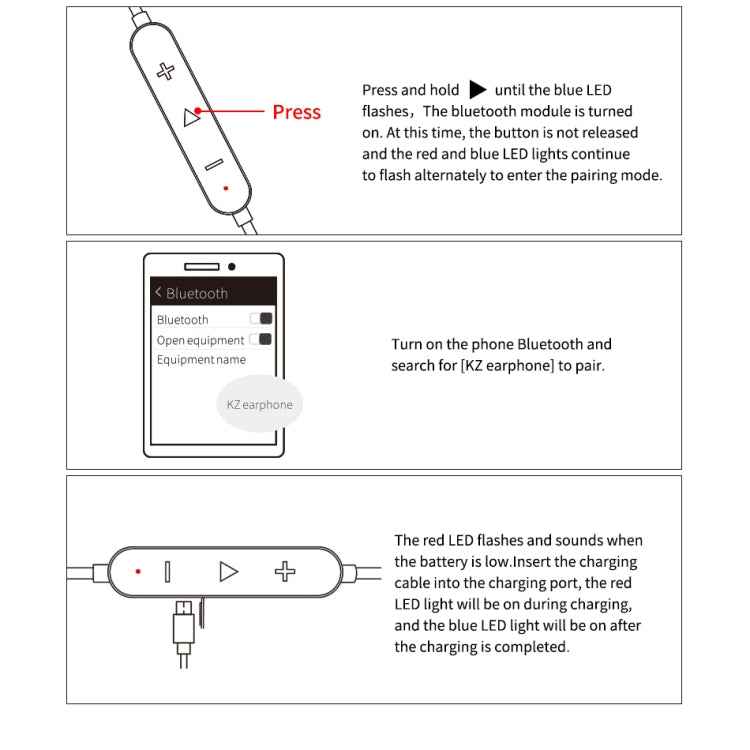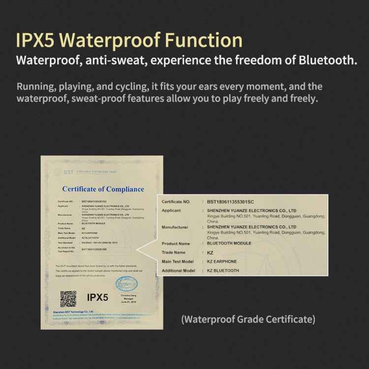 KZ Waterproof High Fidelity Bluetooth Upgrade Cable for KZ ZSN Earphones, KZ ZSN Earphones(Black)