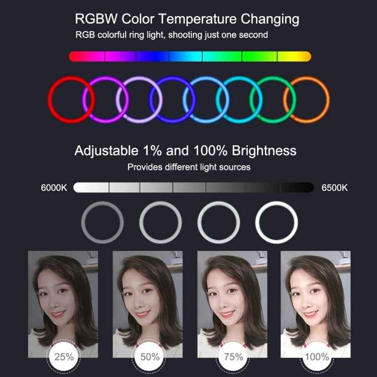 4. RGB colors lighting mode adjustable brightness for your choose,you can adjust the color and brightness very easily, good brightness can be achieved without installing extra colorful filters. Different colors of soft natural light illuminate your beauty in different occasions.