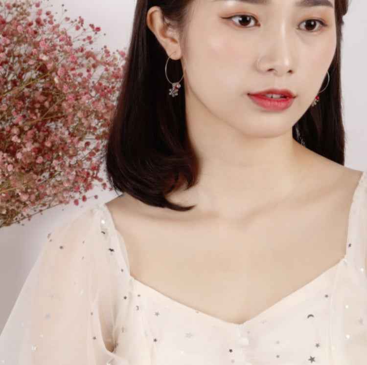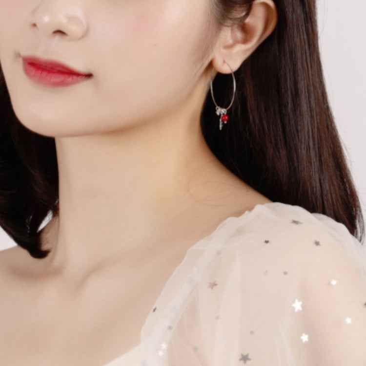 S925 Sterling Silver Sparkling Diamond Red Ball Snowflake Earrings Christmas Earrings