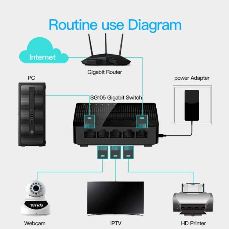 Tenda SG105 Mini 5 Ports 1000Mpbs Fast Gigabit Ethernet Network Switch LAN HUB