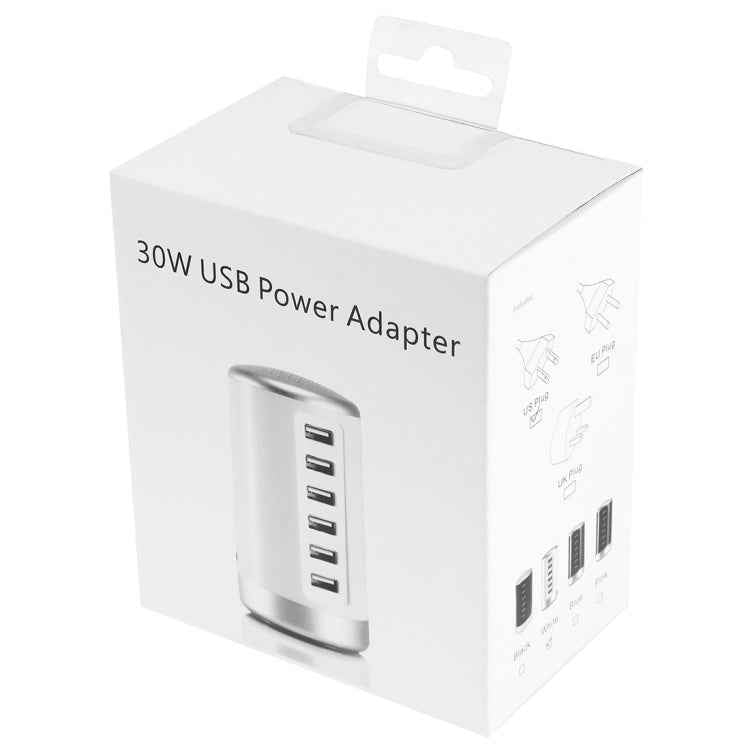 XLD4 30W 6-USB Ports Charger Station Power Adapter AC100-240V, US Plug